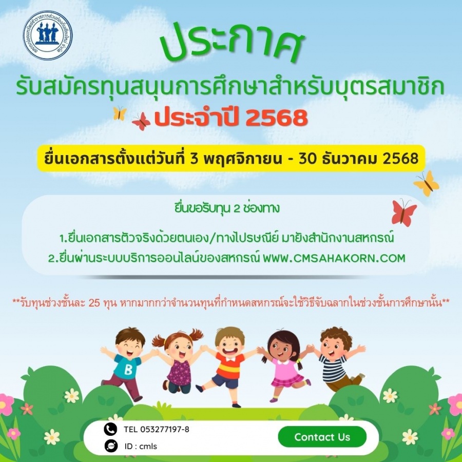 ประกาศ รับสมัครทุนสนุนการศึกษาสำหรับบุตรสมาชิก ประจำปี 2568