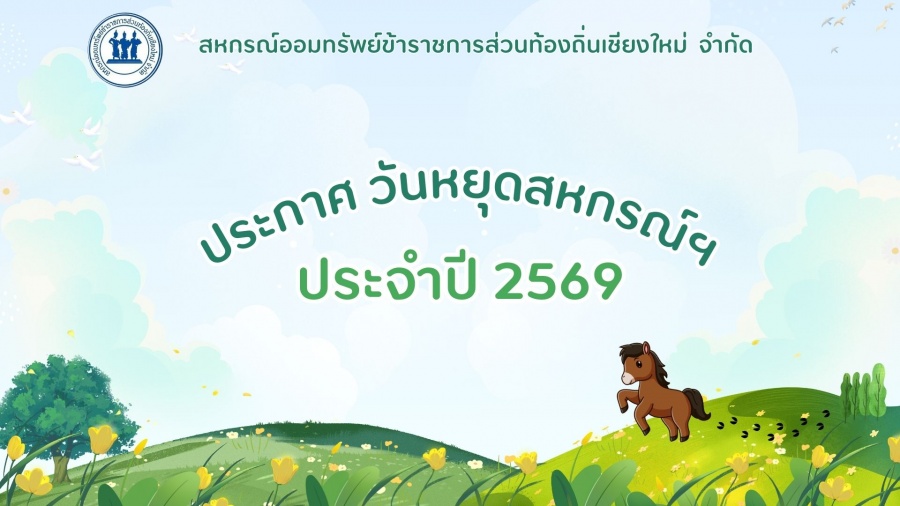 ประกาศ เรื่อง วันหยุดทาการของสหกรณ์ออมทรัพย์ข้าราชการส่วนท้องถิ่นเชียงใหม่ จากัด ประจำปี 2569...