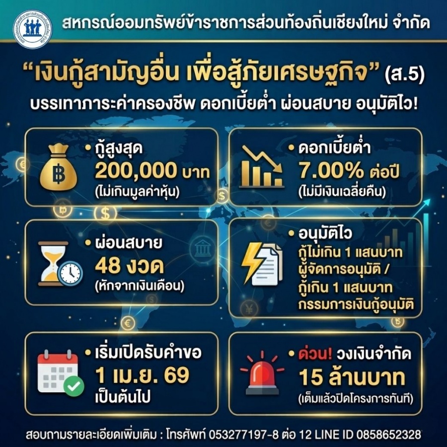 การค้ำประกัน** ให้เป็นไปตามหลักเกณฑ์และเงื่อนไขเงินกู้เพื่อเหตุฉุกเฉินและเงินกู้สามัญ
