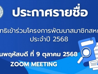 ประกาศรายชื่อผู้มีสิทธิเข้าร่วมโครงการพัฒนาสมาชิก ประจำปี 2568 จำนวน 250 คน
