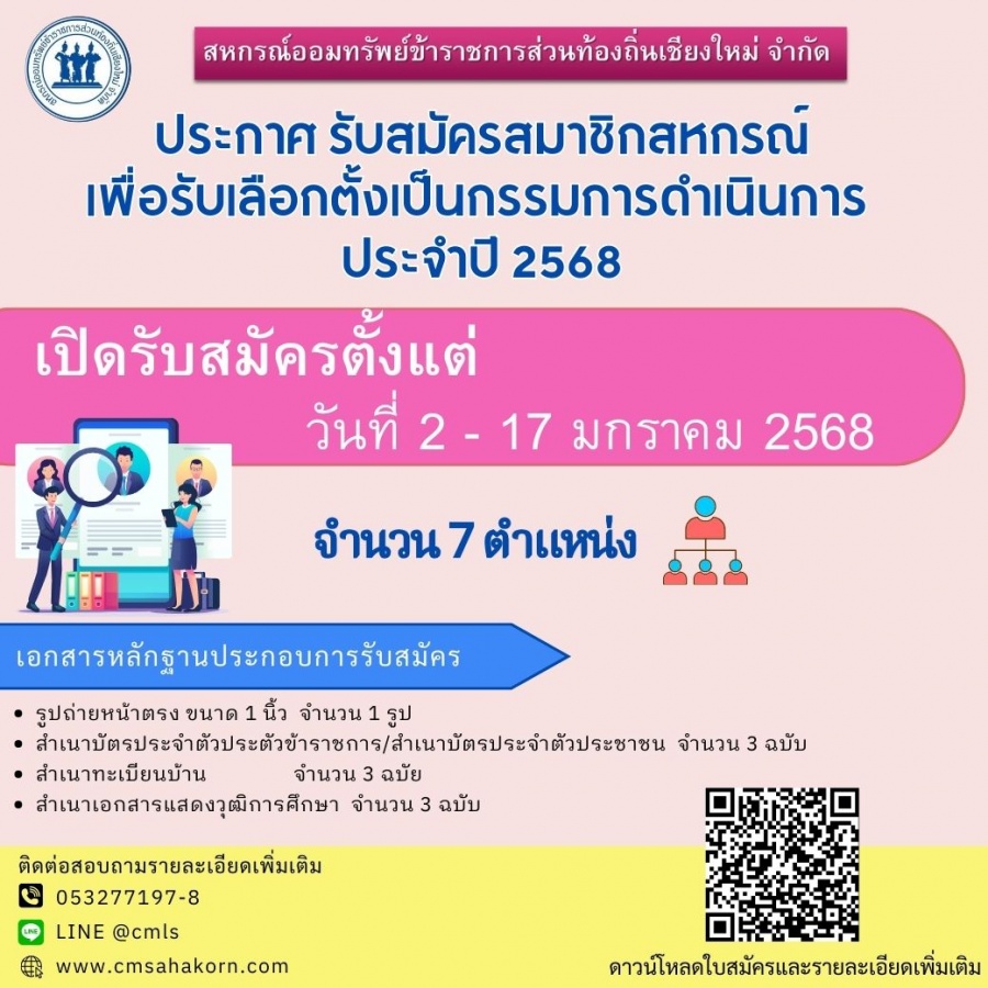 ประกาศและใบสมัคร รับสมัครสมาชิกสหกรณ์เพื่อรับเลือกตั้งเป็นกรรมการดำเนินการ ประจำปี 2568