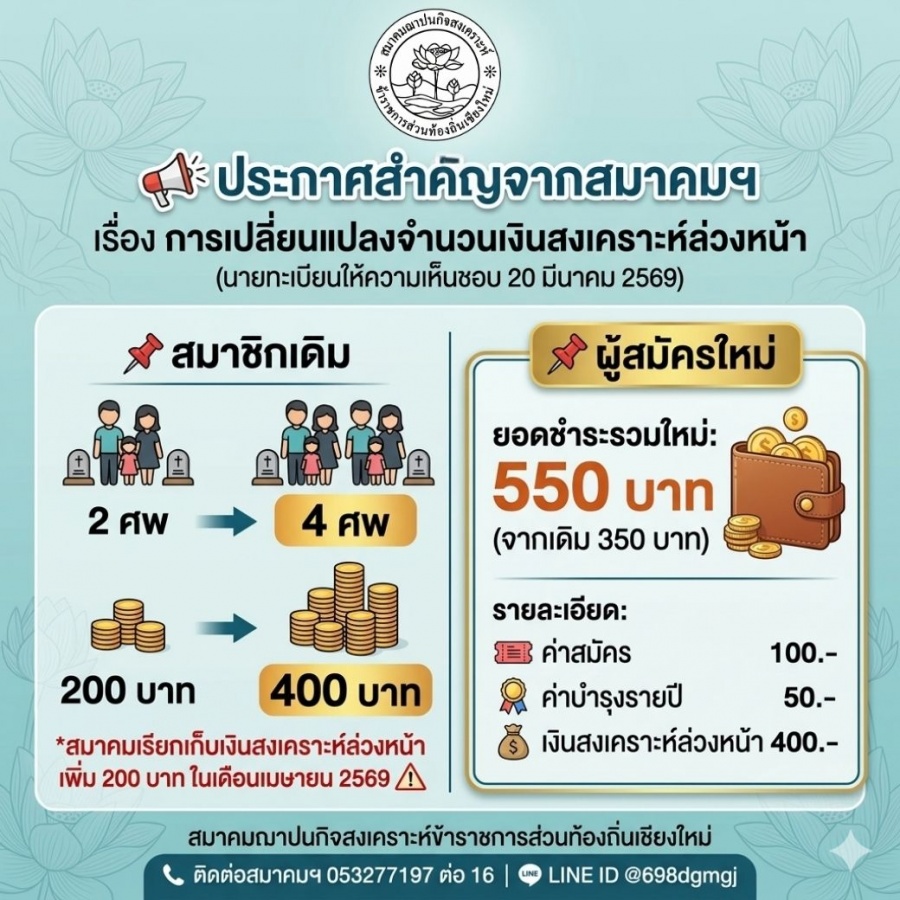 | 1 | รายงานเรียกเก็บเงินสงเคราะห์ล่วงหน้าเพิ่ม 200 บาท ประจำเดือนเมษายน 2569 | 1.80 MB. | 172 |